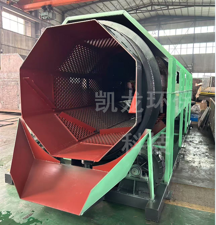 無軸滾筒篩是通過對顆粒粒徑大小來控制垃圾分選的,分選精度高。滾筒篩的筒體一般分幾段,可視具體情況而定,篩孔由小到大排列,每一段上的篩孔孔徑相同。被廣泛應(yīng)用于城市垃圾處理中,包括生活垃圾、建筑垃圾、裝修垃圾等。