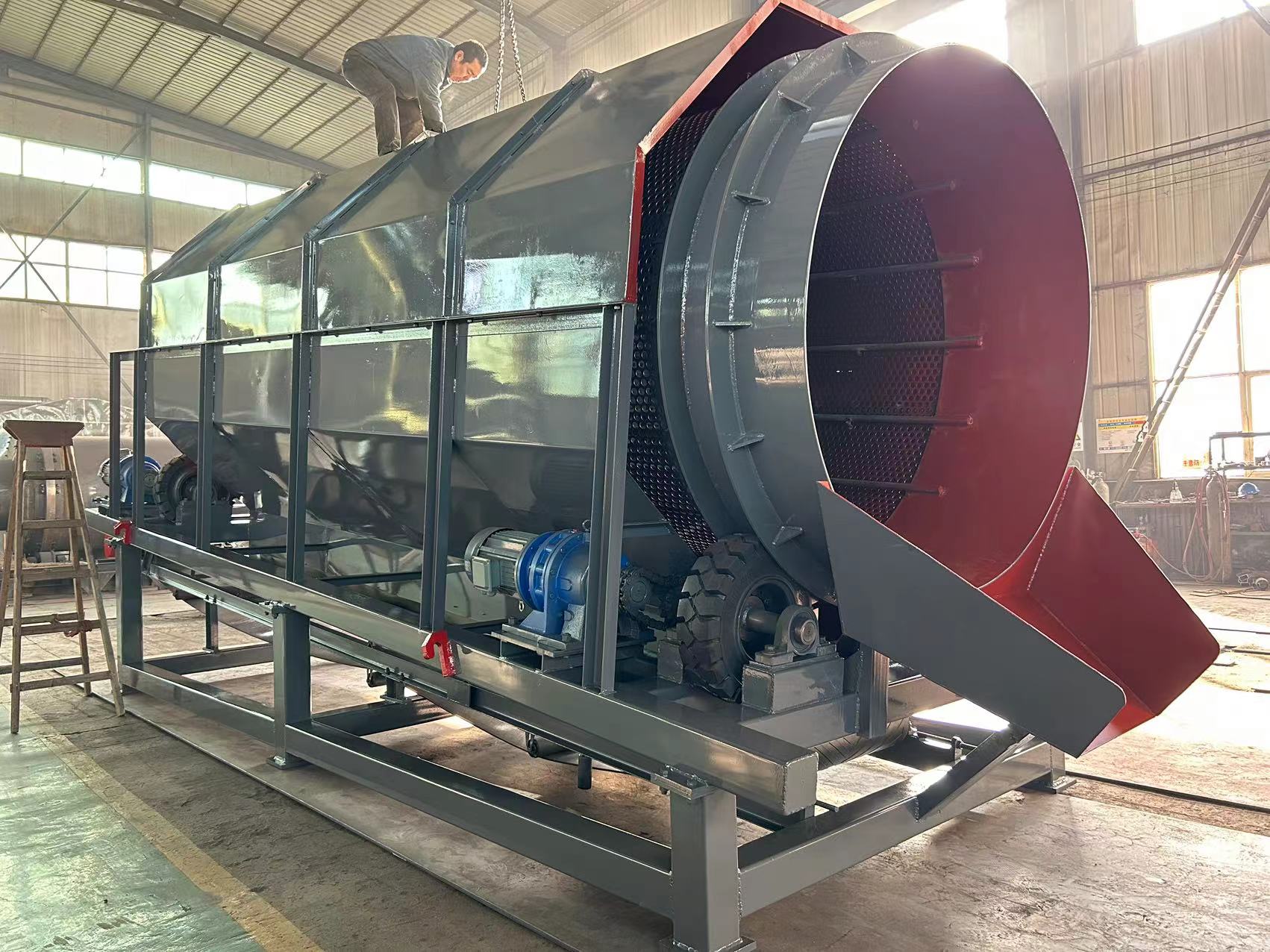 解決方法:滾筒篩電機卡死一般分兩種情況,超負荷運行和電壓不穩(wěn)。及時檢查電壓電流情況保證設備正常運行。設備需空車開機,運行正常后進行入料,入料按部就班依次進入不能給設備造成太大壓力即可避免電機卡死情況。